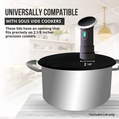 - FITS UP TO 10.5” STOCK POTS – Aside from measuring the diameter of your precision cooker stockpot, you also need to consider the diameter of the sous vide precision cooker stick. These lids have an opening that fits precisely on 2 1/8 inches precision cookers.