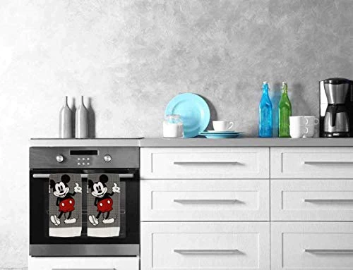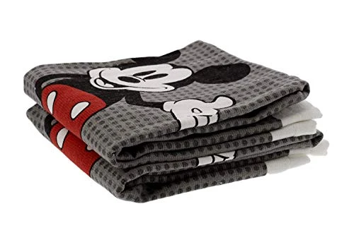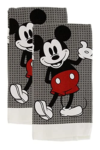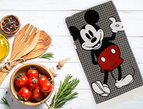 100% Cotton Kitchen Towels, 2pk, Perfect For Drying Dishes & Hands, Absorbent, Light Weight, And Adorable- Machine Washable- 16” X 26” – Mickey Grey Dots