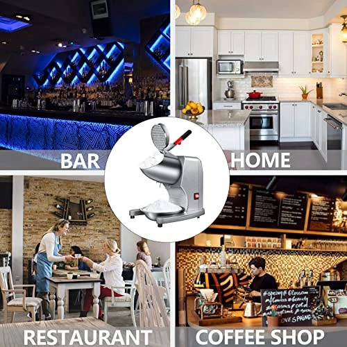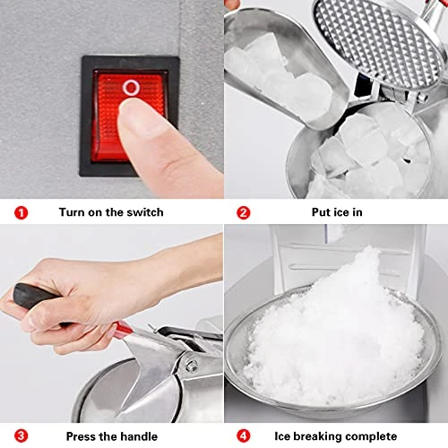 - 🍧【HIGH QUALITY MATERIAL】The handle of ice shaver machine is made of rubber,which is insulated and non slip.The heavy casting base has four anti-skid rubber pads to ensure the stability of the equipment in operation.