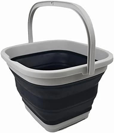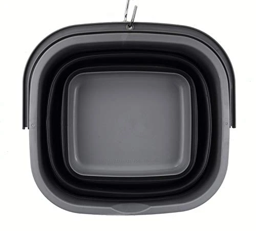 - Space saving with Expanded size: 13.6 x 12.7 x 8.4(h) inches and its height just 2.1 inches after folds. Save over 70% space when storage. Capacity: 10L / 2.6 gallon