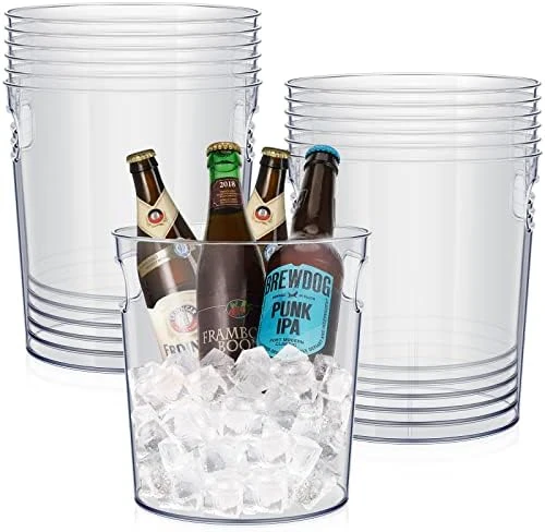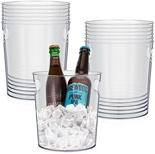 12 Pcs Plastic Ice Buckets With Handle Clear Wine Bucket Round Champagne Bucket Large Wine Cooler Bucket Portable Party Tubs For Drinks Chiller Bin For Beer Bottle With Handles (6.5 X 6.9 X 5.5 Inch)