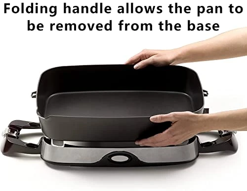 - electric skillet 16 inch :Built-in water spout for pouring liquids from the pan serves as a spoon and spatula holder during cooking and serving.