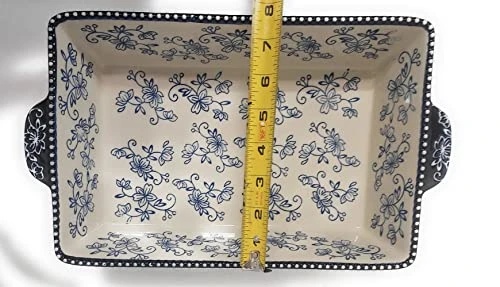 - Prep, bake, serve, store and reheat in the same dish and then clean up in the dishwasher; Approximate measurements including handles: Baker 14″L x 9″W x 3″H;