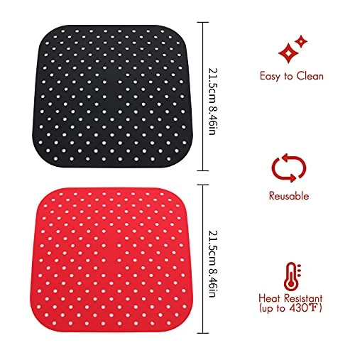 - ★【Material】Non-stick silicone air fryer pad made of high-quality silica gel, heat-resistant, washable, and reusable.