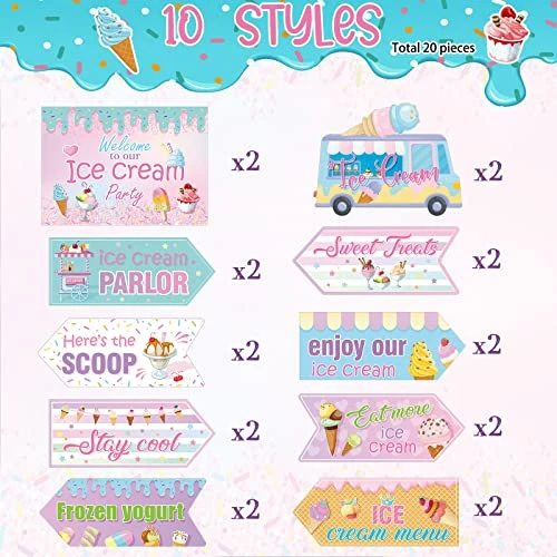 20 Pcs Ice Cream Party Decorations Ice Cream Party Sign Ice Cream Birthday Party Decorations Ice Cream Party Supplies Ice Cream Theme Party Decorations Street Photo Prop Cutouts For Home Party Decor