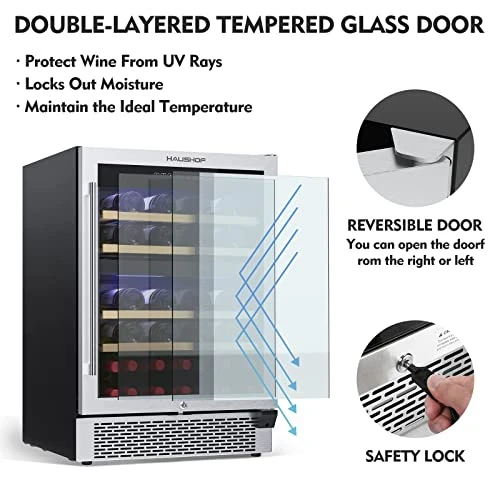 - Detailed Design: Removable beech wooden shelves make the design of the wine cooler more unique, and the storage space can be freely adjusted. Security locks make your wine cooler more private and secure. Adjustable feet allow you to freely adjust the height of the wine cooler.