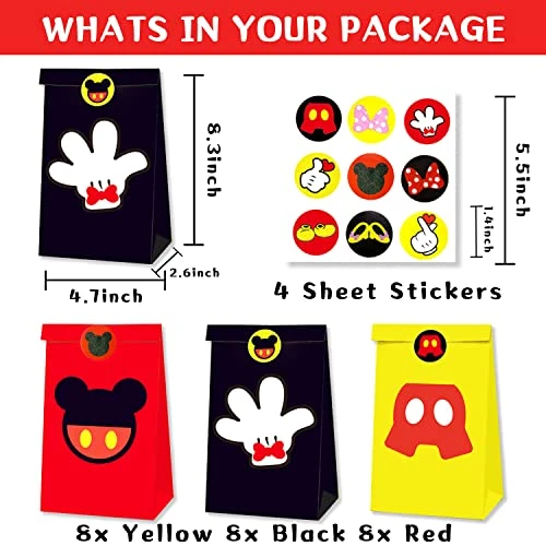 - 🔹 Mouse Themed Party Supplies- The Mouse Paper Bags are wonderful adding to your party, suitable for delivering party favors like: candy, snack, cookie, chocolate, small gift/toy and etc. It would give a big surprise to your kid and your guests.