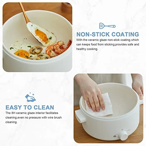 - 🍬【Fast Heating&Higher Safety】This ramen cooker uses an upgraded full heating plate,which can keeps your food heated evenly and heated lastingly.Compared with the traditional stoves,this small non stick pot is more durable, easier to cook different kinds of tasty food. At the same time,the mini electric cooker has the over-heating protection and boil dry protection device,effectively protect the pot from overheating and continuously boiling when it is dry,make you can rest assured to use.