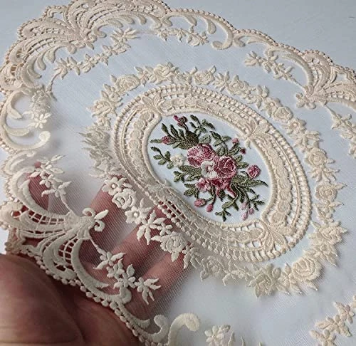 - 【Table Mat Detail】This vintage place mat is a oval handmade embroidery crafts, crochet flower lace mat, 12×16″, beige, 2 Set.