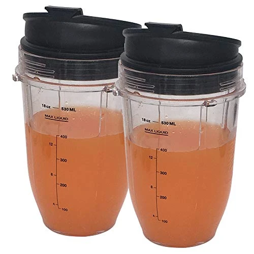 2pcs Replacement 18oz Jar Cup With Sip N Seal Flip Lids,Compatible With 900w 1000w Nutri Ninja Blender Auto IQ 900w 1000w& Nutri Ninja Blender Auto IQ Series (