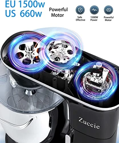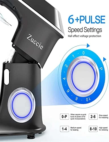 - LOW NOISE & SHOCK ABSORPTION – Zuccie dough mixer operation noise is only 68-75db, Don’t worry about making noise to your family when you use it. The kitchen mixers are designed with shock absorption and anti-displacement, and there will be no displacement during use.