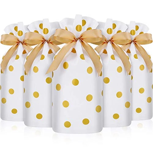 - Convenient and elegant design: the equipped ribbon drawstring closure design helps you store things quickly and packing and disassembly easily; Gold polka dot print bags make your gifts look more delicate and elegant in party favors