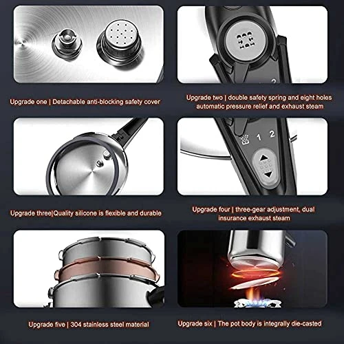 - ❤ Safe lock : This pressure cooker comes with multi-functional locking safety handle and heat resistant handles to keep you safe, it also displays a visual pressure indicator
