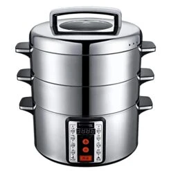 32cm Diameter 3 Layer Electric Steamer Stainless Steel Multifunction Large Capacity Household Electric Cooking Steaming Pot