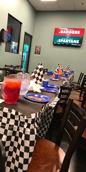 - Prepare your table for different race car activities with this black & White checkeredd Table Skirt