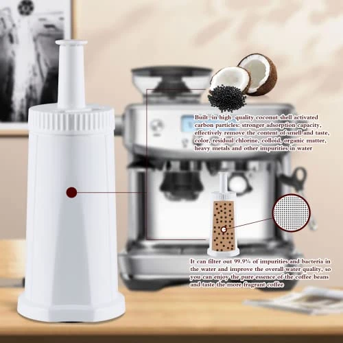- âś…Upgraded Filtration Technology High Efficiency:Bes880bss Breville barista touch water filter replacement For Breville Espresso coffee machine adopts upgrade micro filtration technology , using coconut carbon adsorption and ion exchange.Prevent mineral accumulation,reduce chlorine,heavy metals, other harmful contaminants,and retains minerals and fluorides to protect your coffee machine to improve its performance and efficiency, maintaining you a balanced diet and healthy life-style.