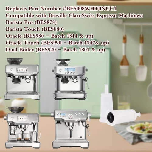 - âś…Perfect Compatibility:Ramco Bes880bss Breville water filters replacement specifically produced to compatible with with Breville Espresso Machines:Â Breville BES880BSS Barista Touch, Breville BES990BSS Oracle Touch, Breville BES980 Oracle, Breville BES878 Barista Pro, Breville Dual Boiler BES920, compare to part #BES008WHT0NUC1
