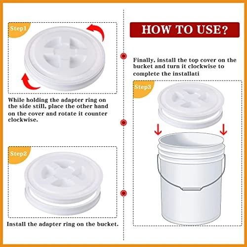 - Important use: these 5-gallon bucket screw seal lids can be widely applied in buckets, storage buckets, paint buckets, rice buckets and food plastic buckets, car wash buckets, fishing, and so on