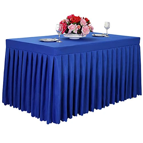 - Tina royal blue table skirts for rectangle tables 4ft Perfect for elegant wedding receptions, formal banquet affairs, trade show events, special catering services, etc.