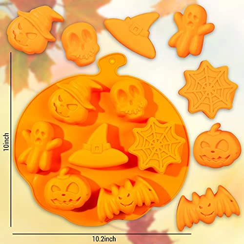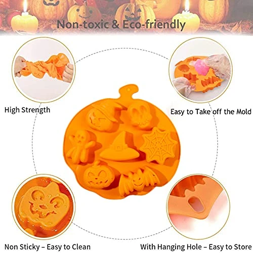 - Assorted Themes – 1pcs bat mold, 1pcs pumpkin mold, 1pcs witch’s hat mold, 1pcs skeleton, and 1pcs pumpkin-shaped mold with cavities of different shapes, these popular Halloween elements will create terrifying and thrilling atmosphere for your party.