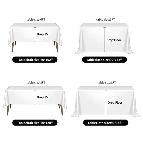 - MULTIPLE COLORS & SIZES: various of colors to meet your different subject of events. Different sizes to fit for big or small tables, with longer or shorter draped skirts. Before purchase, measure your tables and check our size pictures to get a better idea how it looks on your table.