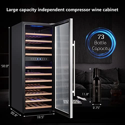 - 11 beech wood racks hold up to 73 bottles, so you can stock up on your favorite wine vintages.