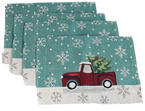 - Adorable vintage truck design perfect for putting out during the holidays and leaving out through January. Includes 4 vintage truck buffalo plaid placemats, 2 kitchen towels, 1 pot holder and 1 oven mitt.