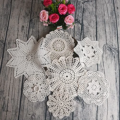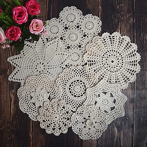 - Value Pack:8Pcs Beige Hand Crochet Lace Doilies- easy wash and reusable.Product size will not be exactly the same and dimensions may vary slightly within 6% due to its nature of hand crochet process.