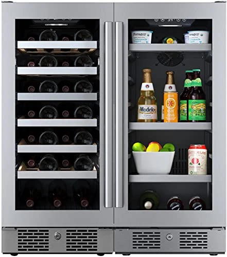 - Side-by-side 27 bottle wine cooler and 86 can beverage cooler combination creates the ultimate storage center for all of your beverages