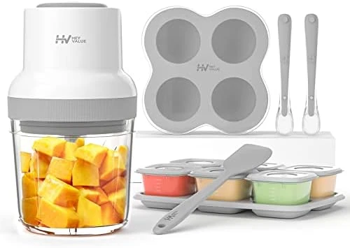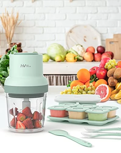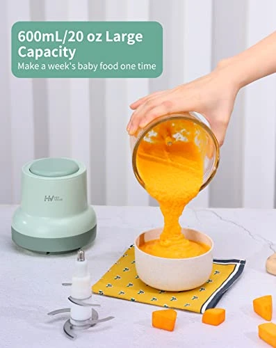 - ✔️【Customize different flavor】Easily chop a variety of vegetables, meats and fruits to different particle sizes according to your needs. 600ml large capacity can meet a weeks needs of most babies. Freeze the prepared puree in containers and freezer tray comes with saves so much time.