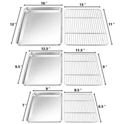 Baking Sheet With Rack Set, Stainless Steel Baking Pan Tray Cookie Sheet With Cooling Rack, Non Toxic & Healthy, Easy Clean & Dishwasher Safe