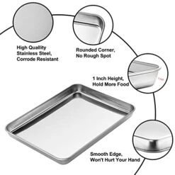 Baking Sheet Set Of 2, Baking Pans Tray Cookie Sheet Stainless Steel, Non Toxic & Healthy, Mirror Finish & Rust Free, Easy Clean & Dishwasher Safe