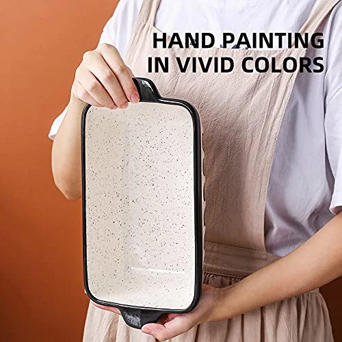 - Hand Painted &Easy Cleanup–Hand-painted color and texture craftsmanship, smooth ceramic and glaze, uneasy to stick foods, easy to wash by hands with water or soap, or put it in the dishwasher