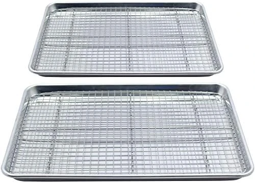 - Quality Baking Rack: This stainless steel sheet pan rack is designed for every situation – whether you’re putting it on the oven or cooling down some cookies.