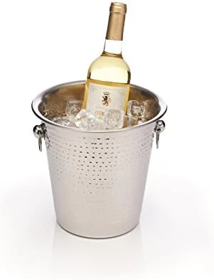 Bar Craft Luxury Stainless Steel Wine / Champagne Cooler Bucket, 21 x 20.5 x 21 cm (8.5″ x 8″ x 8.5″) – Hammered Finish
