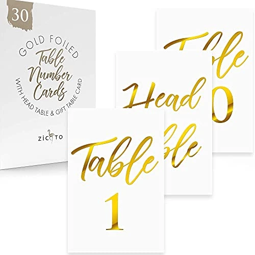 Be the first to review “Beautiful Gold Table Numbers For Wedding Reception In Double Sided Gold Foil Lettering With Head Table Card – 4 X 6 Inches And Numbered 1-30 – Perfect For Wedding Reception And Events” Cancel reply