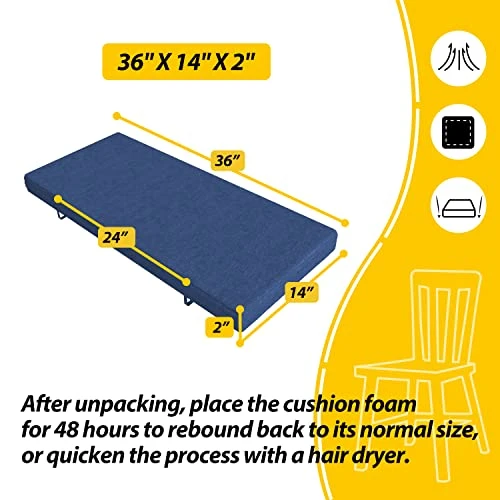 - Wide Use & Beautiful Decor: Ideal for spaces such as bay window seats, indoor sofas, piano benches, dining benches and floors. Can also be used for some commercial purposes. Besides, the simple solid-color style makes the cushion a perfect fit for furniture of various styles. The cushion measures 36”L×14”W×2”H. Please measure your furniture before ordering, and after unpacking the package, please allow about 48 hours for the cushion foam to rebound to its normal shape.