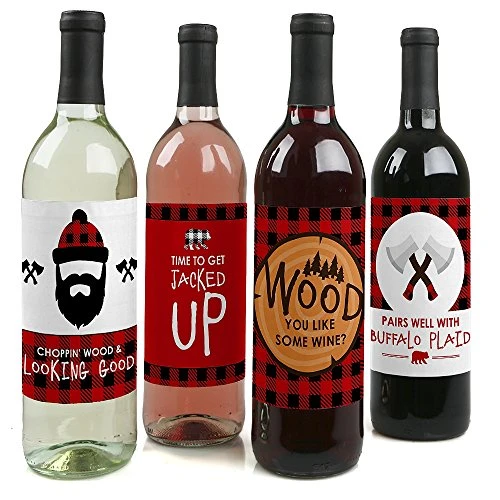 - UNIQUE LUMBERJACK GIFT IDEA: Black and Red Buffalo Plaid Wine Bottle Labels also make a great gift idea. Add Lumberjack Wine Bottle labels to a favorite bottle of wine or spirits for a special flannel gift. Use each wine label on a favorite beverage bottle and gift individually or create an impressive lumberjack gift basket using all 4 labels on coordinating wine or liquor bottles. Wine bottle labels will easily give your buffalo plaid gift a personal touch!