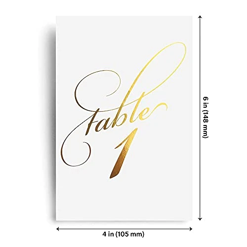 Bliss Collections Table Numbers, Gold Foil, Double-Sided Cards Plus Head Table Card For Your Wedding, Reception, Anniversary, Birthday Party Or Celebration, 4″x6″ (1-25 Plus Head Table Card)
