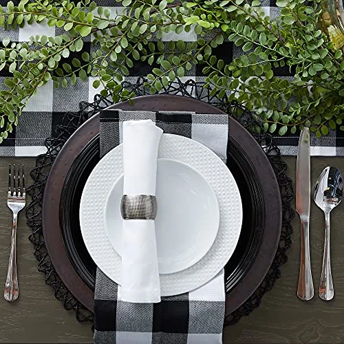 - ADDS A FINISHING TOUCH: Our colorfast wrinkle resistant white and black checkered table runner allows your dinnerware to stand out, making a statement; Our buffalo check table accessories come in a variety of colors and sizes, allowing you to mix and match