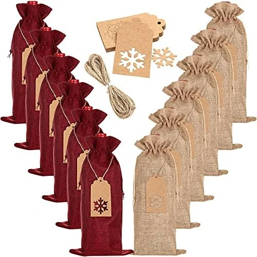 - Package Includes: 12 pieces wine bottle bags(6 red wine and 6 jute color), 24 pieces gift tags with heart design and 16.4 feet jute string, this tags has a blank design, you can write whatever you like on it. The kraft paper tags are pre-punched with holes and convenient to use