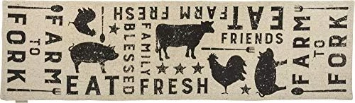 - FARMHOUSE STYLE: A black and white cotton table runner featuring distressed farmhouse design in a neutral palette