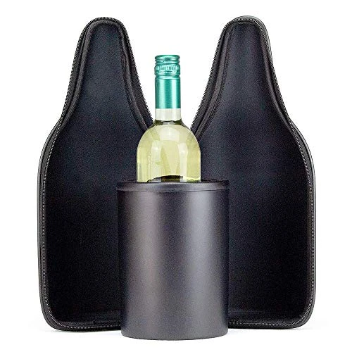 The CaddyO Elegant Cloth Wine Tote and Gel-Infused Iceless Wine Chiller Set by ChillnJoy lets you transport and chill a room-temperature bottle of wine for hours. The chiller’s proprietary gel has been engineered to cool wine down to the ideal temperature. The adjustable shoulder strap lets you comfortably go about your activities while handling other belongings.