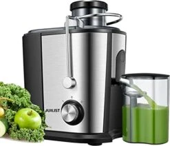 - 【Customize Your Juicing】Explore more possibilities of juice by two speeds custom settings for easy extraction of maximum juice from fruit and vegetable. Speed “I” (12,000 RPM to 15,000 RPM) for “soft” types: celery, watermelon, orange, etc. Speed “Ⅱ”(15,000 RPM to 18,000 RPM) for “hard” types: apples, carrots, etc. The juicer machines can perfectly separate juice and pulp, making a variety of healthy juices for your family.
