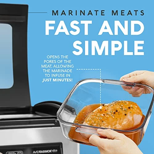 - Marinating Made Easy – Unlike regular vacuum sealers for food, our kitchen sealing machine lets you marinate food items in the vacuum chamber. Place your meat in vacuum packers for food to open up its surface, and soak it in the marinade for minutes.