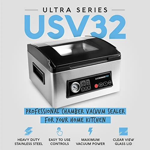 - Sleek, Compact Design – Pack individual or small, family-sized servings with our small vacuum sealer. This meat vacuum sealer machine chamber measures 11.5”W x 12”D x 3.5”H and has a clear glass lid for easy loading. Place your vac sealer machine on your countertop.