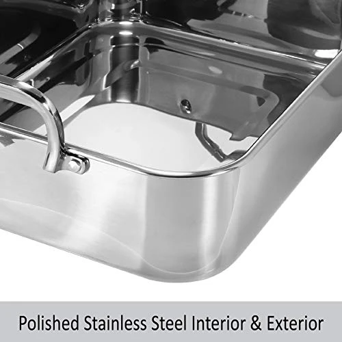 - STAINLESS STEEL: Polished Stainless Steel Exterior and Interior.. Stainless Steel Roaster for oven use.
