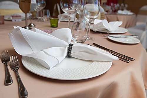- Each napkin is carefully cut and sewn from the finest quality poly cotton fabric with generous hem. These are excellent as hotel napkins, wedding reception napkins, restaurant napkins, banquet table napkins and as party table napkins.