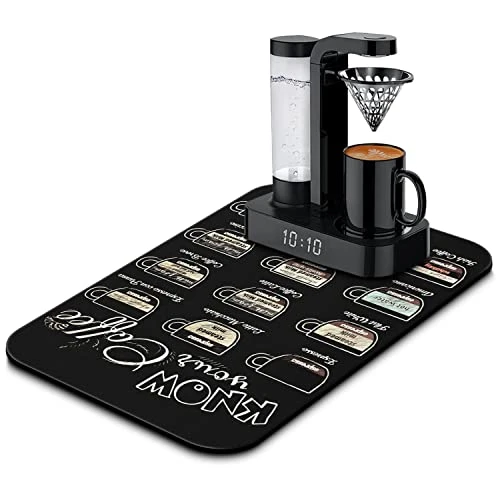 - MULTI-USE PADS:The coffee accessories coffee maker mat for counter was designed for the coffee maker, perfect coffee mat for counter, It can not only be used as a kitchen tableware drying pad, dishes drainer mats,pet feeding pad, etc., but also can be used as a bar cup drying pad.