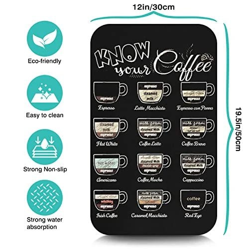 - EASY TO CLEAN & FAST DRYING:The countertop coffee bar mat can be hand washed or machine cleaned to remove stains, it dries quickly and can be reused, but be careful not to bleach.